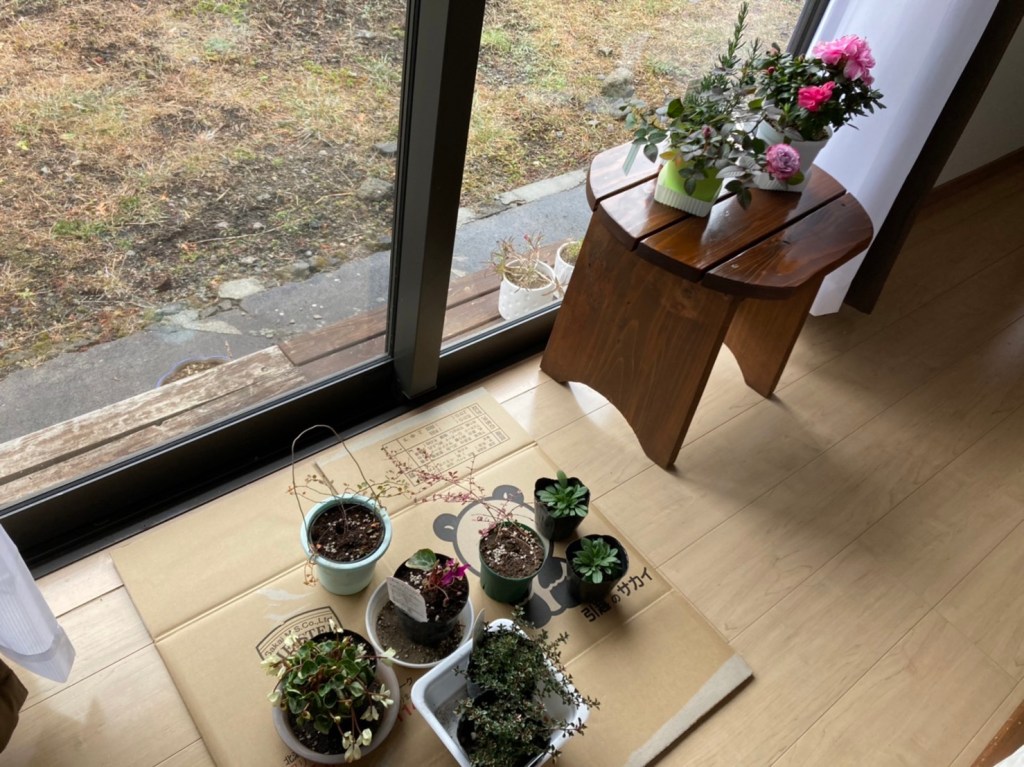 買って2週間くらいはリビングに置きっぱなしだったけど、この1週間くらいは、毎朝縁側に移動し、窓越しに日光を浴びるようにしています。