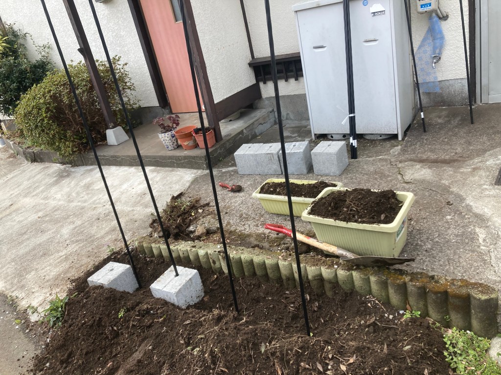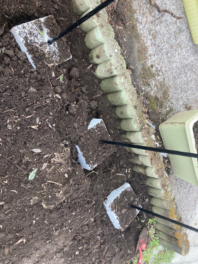 南天のぶっとい根っこが残ってて、ブロックを置けない!