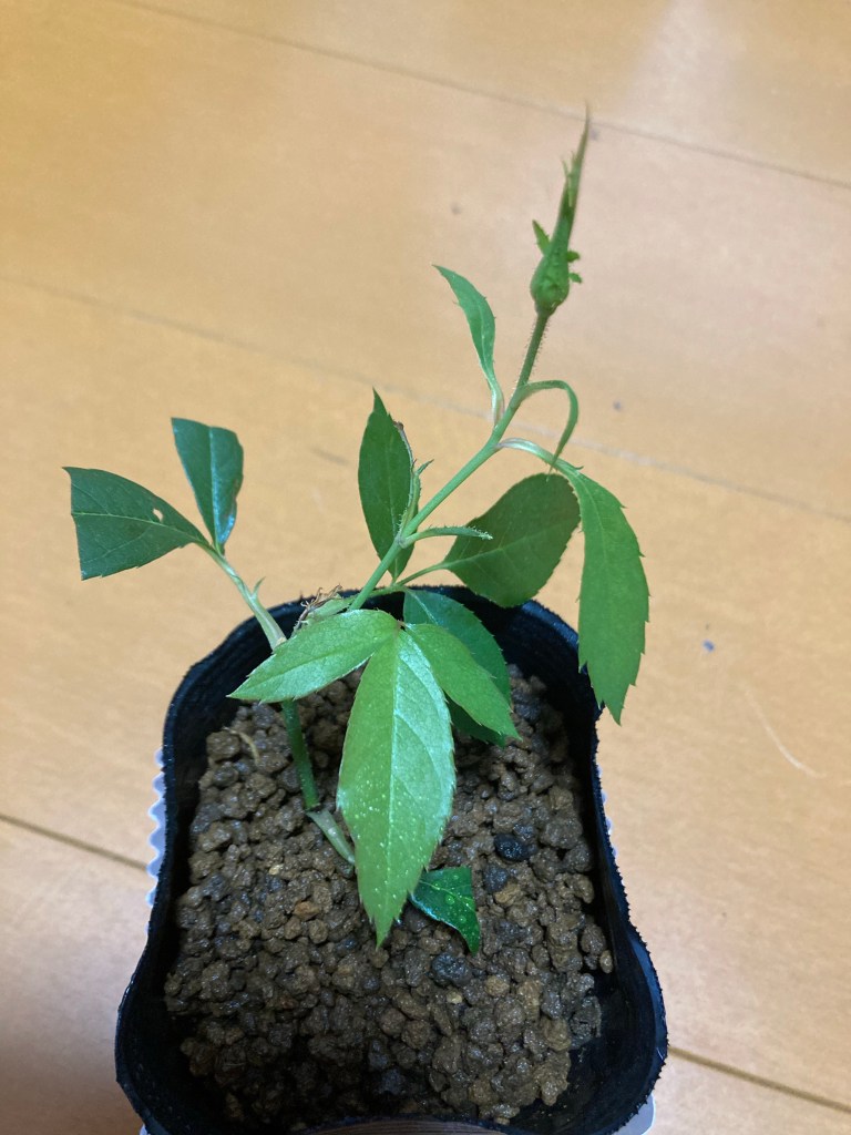 今は根っこや枝を充実させて、丈夫にするのが優先だと思うのでツボミをカットしました。