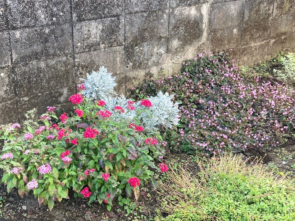 隣のシロタエギクやペンタスと並んで咲き、春には何もなかった庭も少しずつ鮮やかになってきています。