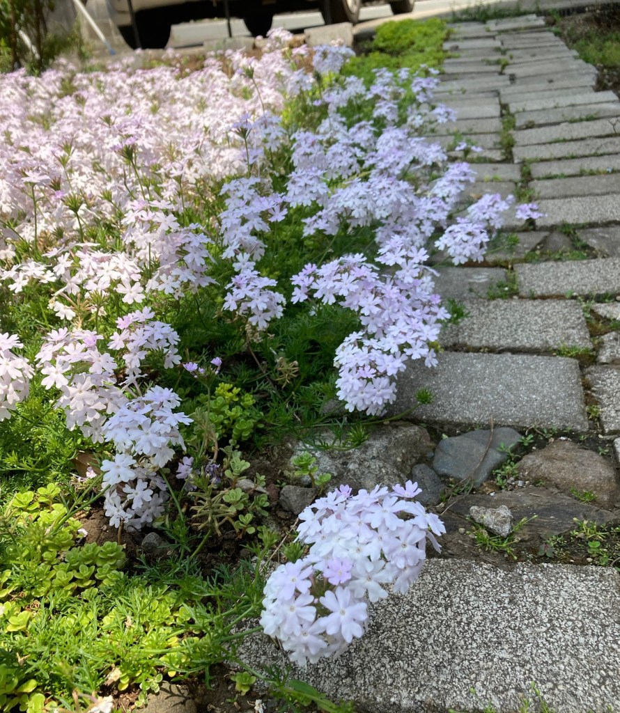 通路にはみ出る花をカットし