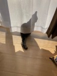夜はカーテン下の部分に折り畳んだ段ボールを立て掛け、応急処置。