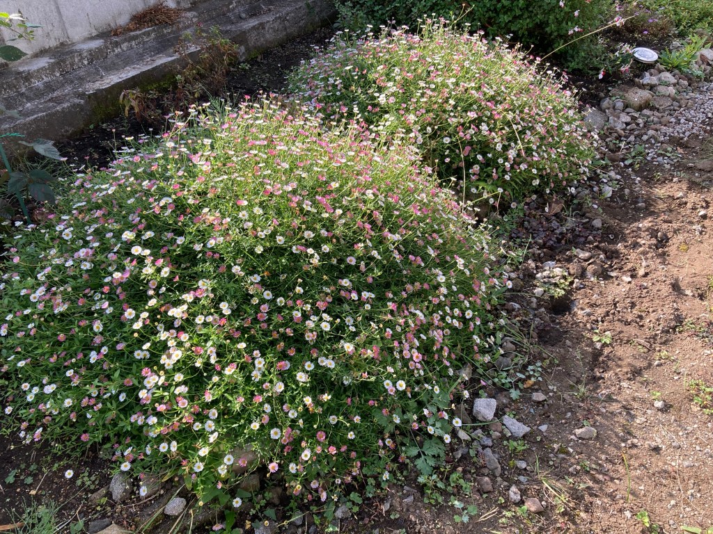 レンガや岩の間からヒョローっと伸びて咲く様子を思い描いて植えたんですが