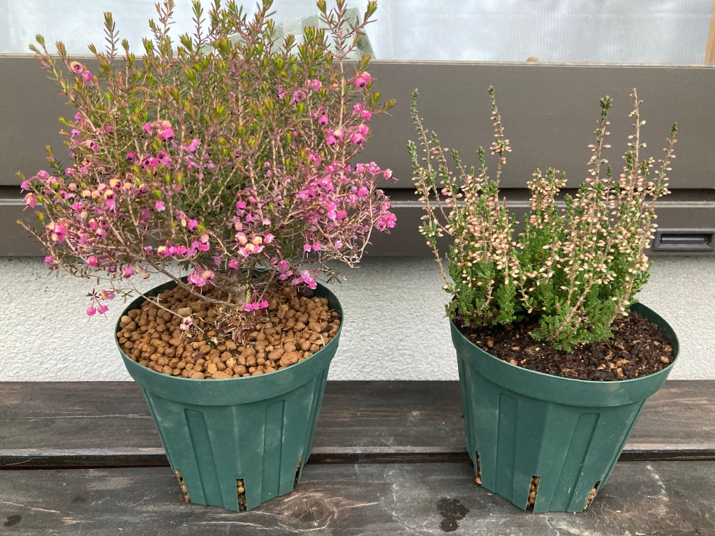 エリカちゃんにはもう少し大きな鉢がよかったようで、培養土を入れるスキマはあまりなく