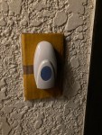 元々付いていたドアチャイムは、塗装などで固まり、外すことが難しいようだったため、段ボールでスイッチ部分をくり抜いたカバーを作り貼り付け。